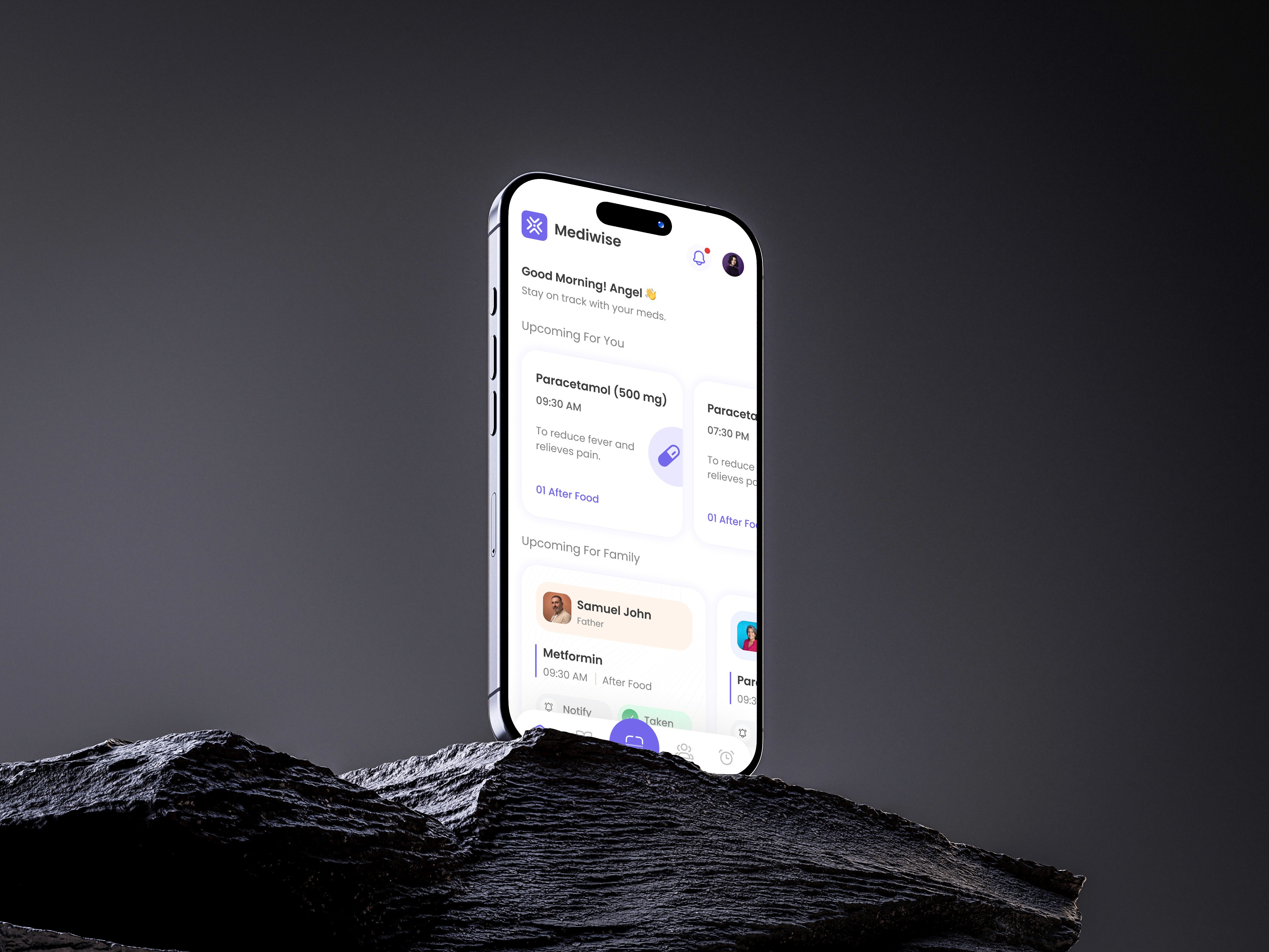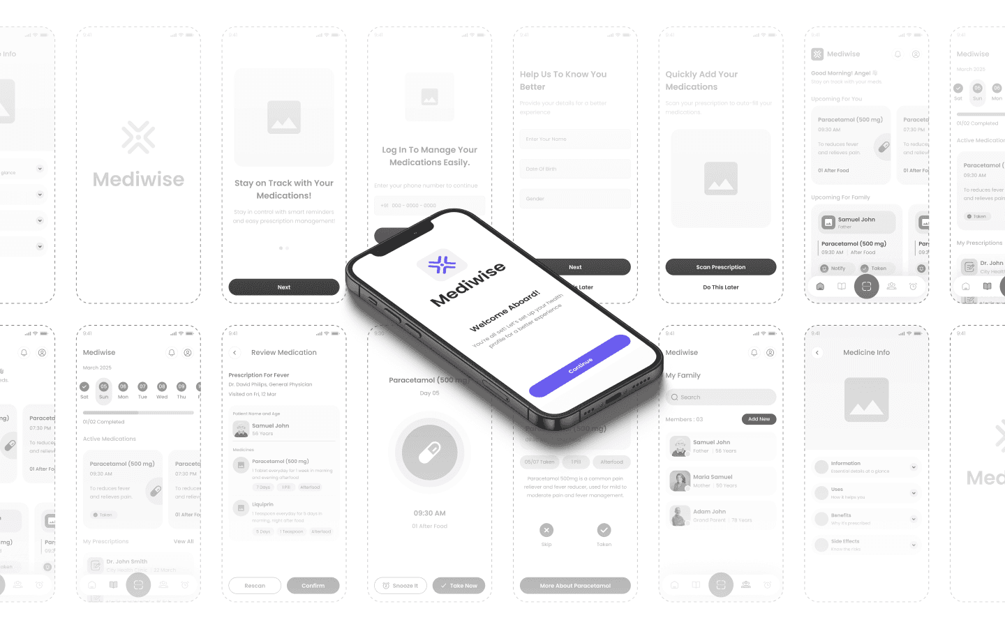 MediWise is an intuitive medication management app designed to help users stay on top of their prescriptions with AI-powered reminders, barcode-based prescription scanning, and family member management. The app aims to simplify medication tracking, reduce missed doses, and integrate seamlessly with pharmacies and healthcare providers.